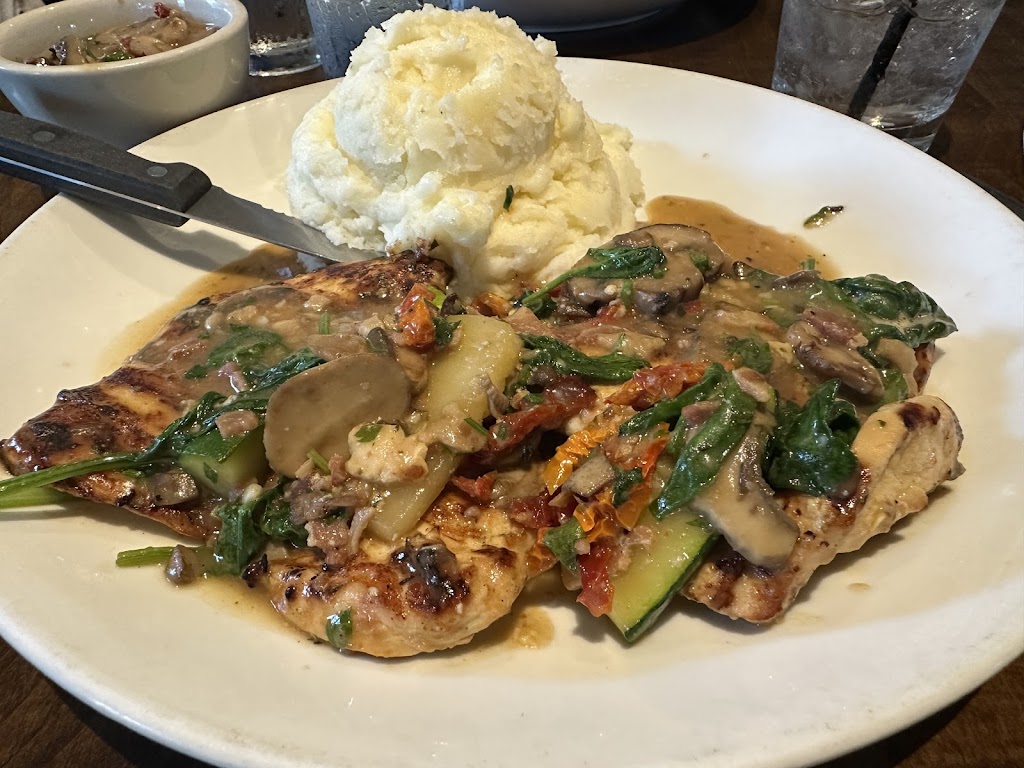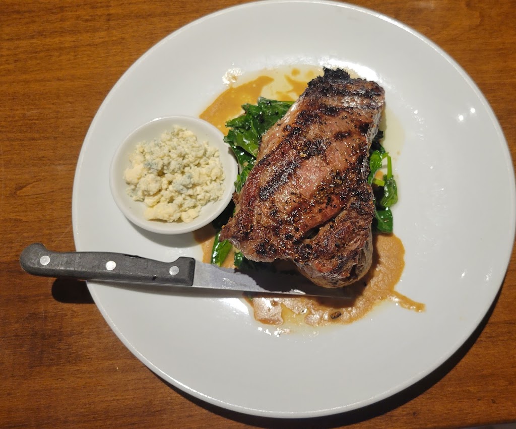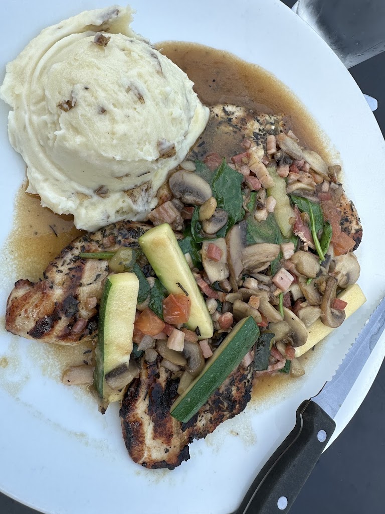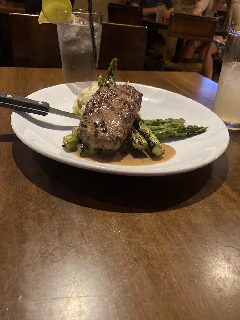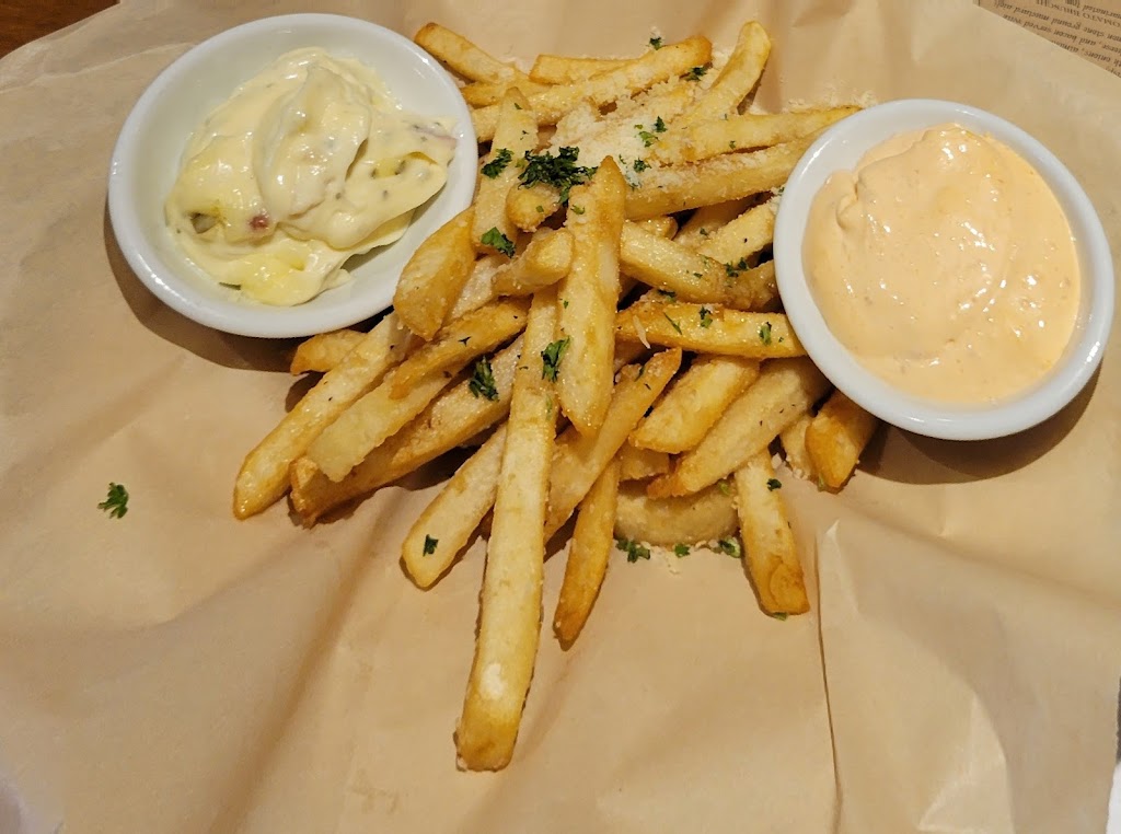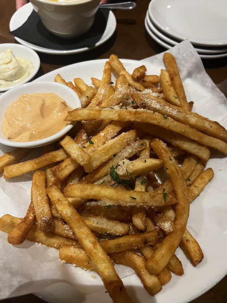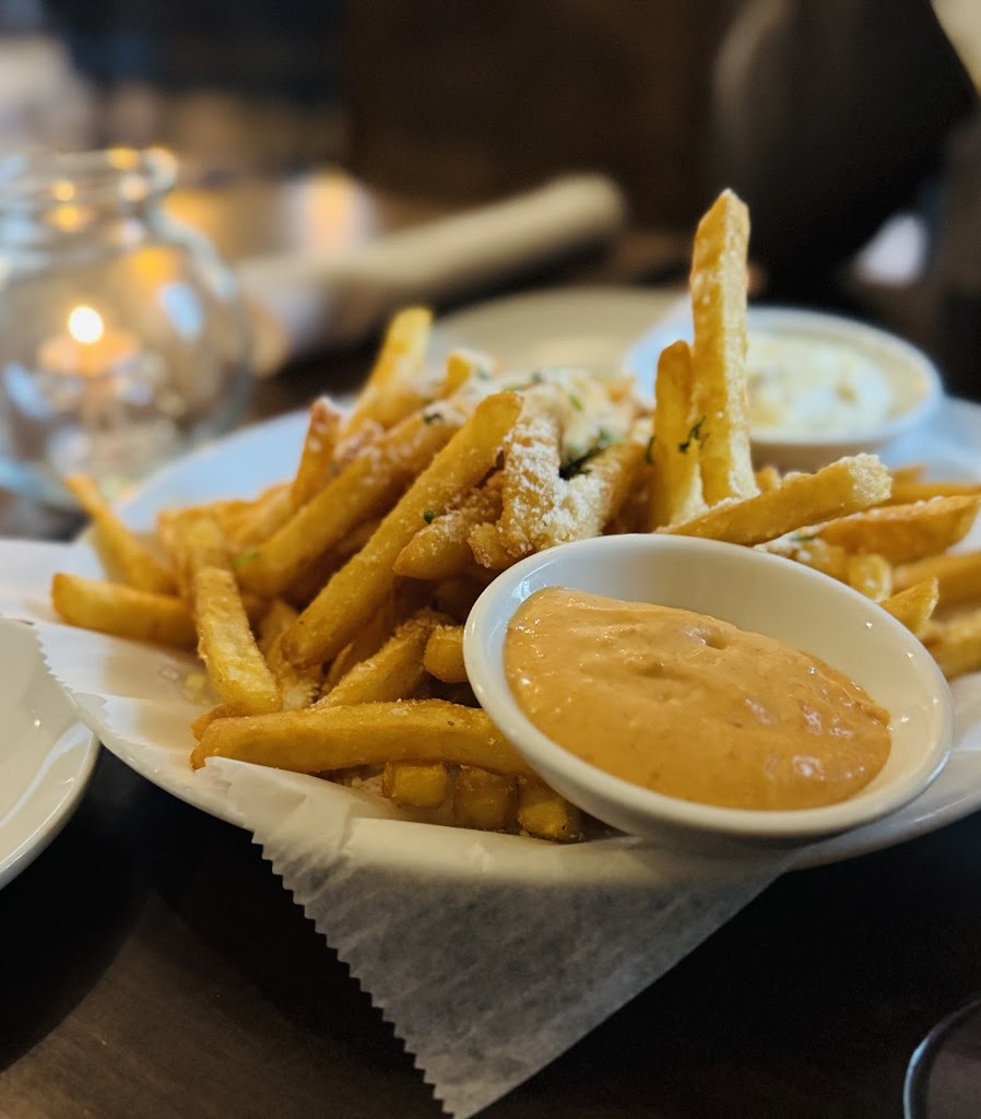 Our dining experience was very nice. We ordered the truffle fries served with garlic aoli and chipotle aoli. They were amazing. The chicken Alfredo was very good. We also ordered the ribeye steak. That was served with with a spinach topped baked potato. The flavors were outstanding.