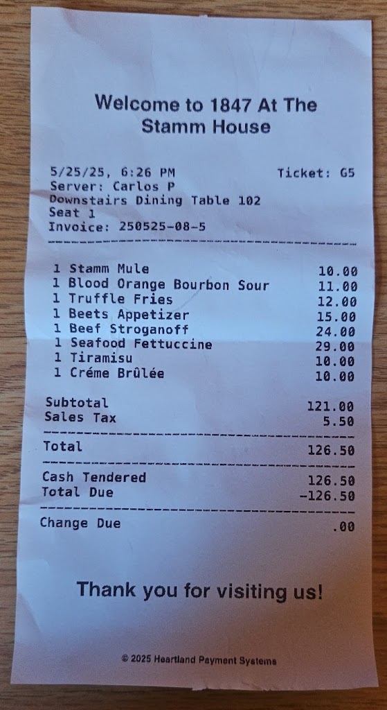Beautiful building. So glad the Stamm house is back! We've been faithful customers through the years and 1847 is still one of our very favorite restaurants!