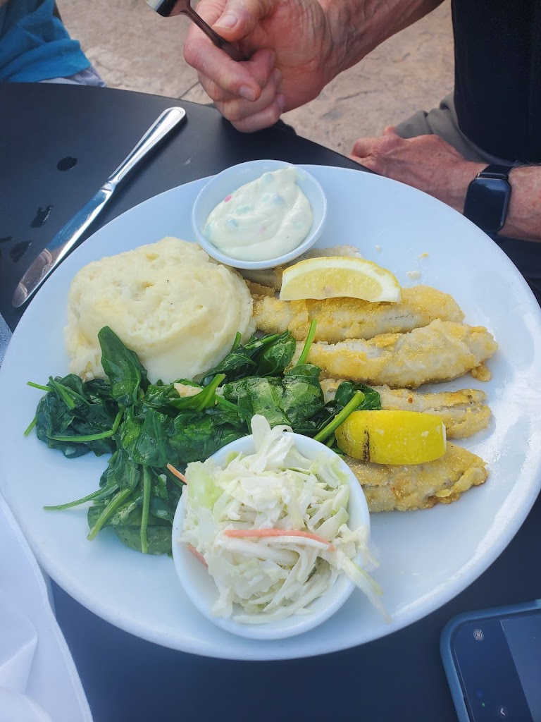 Had the walleye, very good. The sides lacked any seasoning. The building is historic and very interesting. Be prepared for stairs. There is seating on main level, but most is up a flight of stairs .
