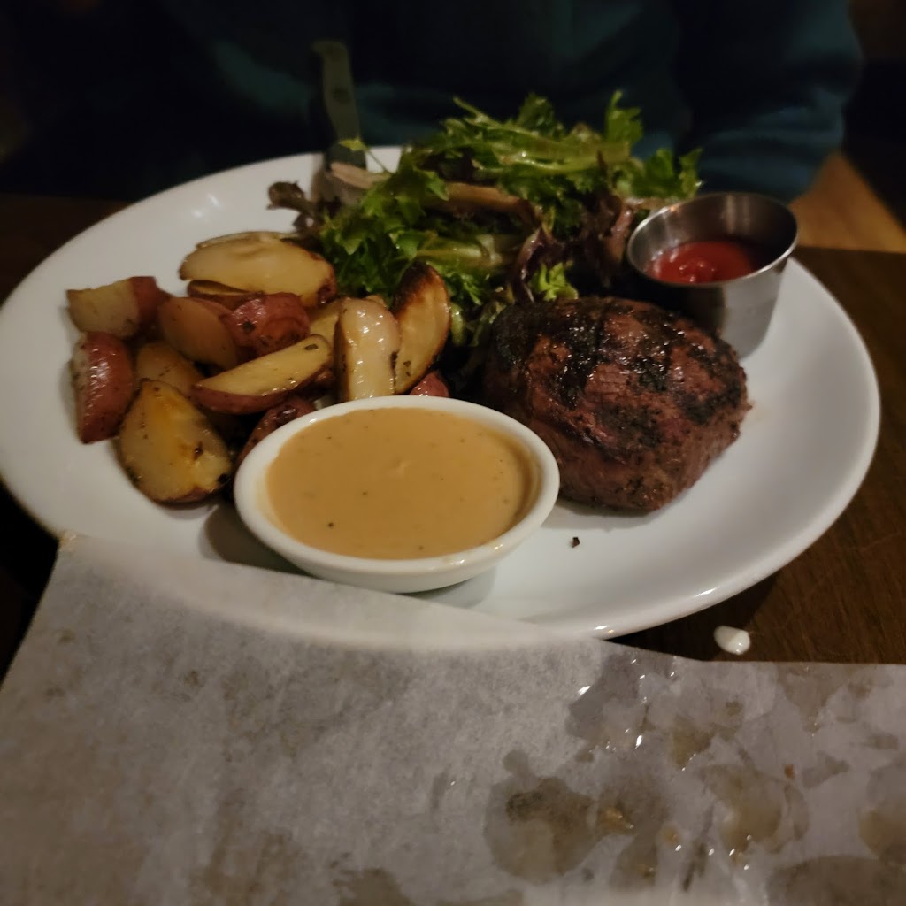 I ordered the tenderloin tips. The meat was very difficult to chew. If it was tenderloin, it was the toughest I’ve ever had. I ate only a few bites. I mentioned it to the waitress. She apologized, but did not adjust the bill.