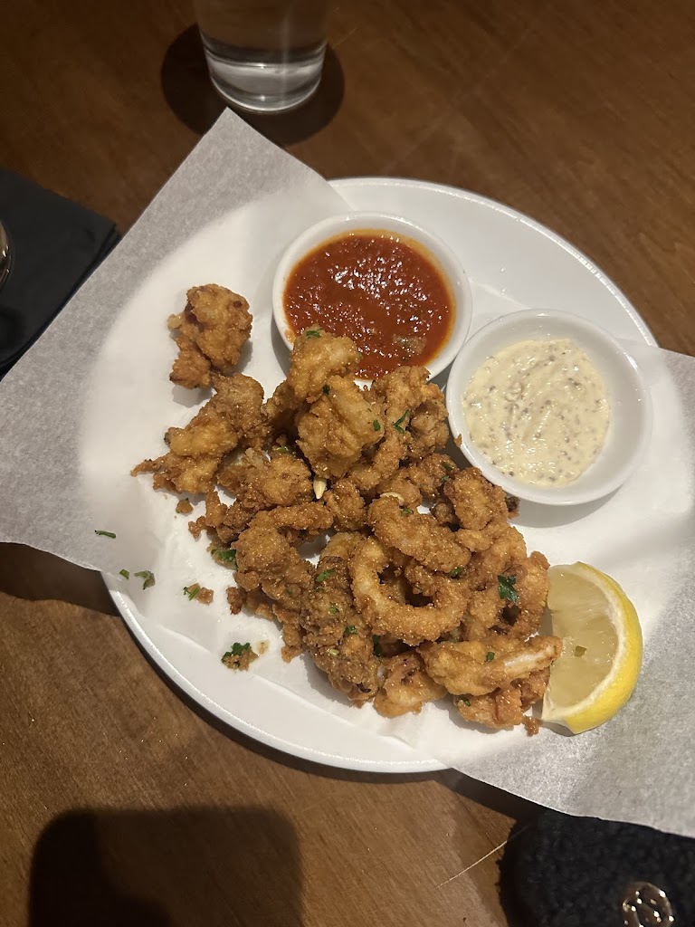 Food was great! Calamari was excellent and my walleye was really tasty. The green beans (with onion and bacon bits) was amazing.