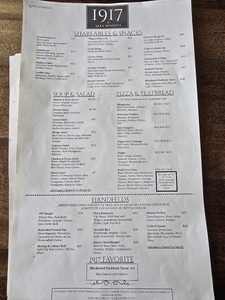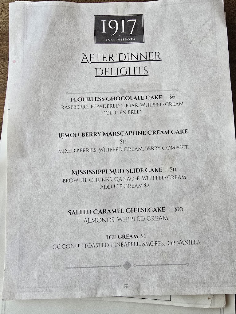 1917 deserves a great review just on the commitment they have shown already in bringing an elevated dining experience to Lake Wissota.
