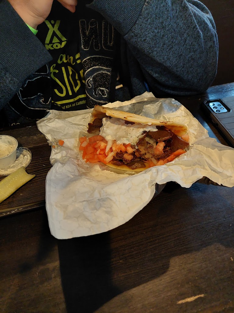 The food here is awesome. The wraps are fun and being one of the only places in town that delivers, puts this at the top of the 'go-to' list! We have dined in as well and the staff is always friendly; when it's busy it can take awhile to get drinks, but overall a pleasant experience.