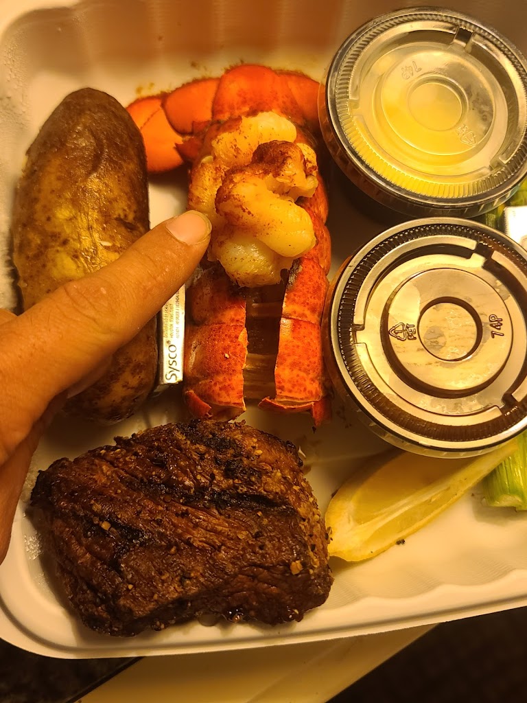 Excellent service and great food! Our waitress (Levy) was sweet and friendly. We went with the sun/thur special and had the salmon and ribeye entress with house salad and lobster bisque. Delicious! Kindly accepted our request to substitute the risotto for garlic potatoes. The crème brûlée dessert was perfect. My only issue was the AC was lacking and the flies were bugging us. I will visit again when in the area.
