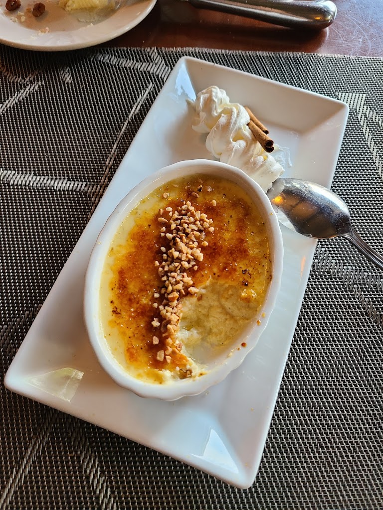 Wonderful service and atmosphere. Delicious food. We had the Chachuterie Board, Mushroom Ravioli, Steak, Creme Brule, and Tiramisu. Everything was fabulous!