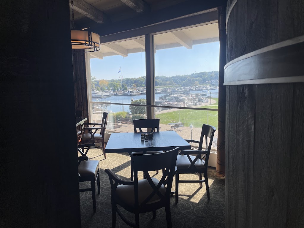 We stayed at the Abbey for a quick getaway. I was excited to see a seemingly higher quality restaurant on sight. The ambiance was nice but I was concerned to see that ALL guests were packed to tables in same area of the restaurant (along the marina side) and they continued to pack guests into the same tables one right after the other with minimal sanitization. The lights of the Marina reflecting off the water were pretty at night. Our waitress was a bit crude for a seemingly classy facility. She "icked" when I orded tea with sweetener and lended her education to me, stating that we are in Wisconsin and sweet tea is only a Southern thing. Oddly enough (and I didn't correct her) however, I'm from very Northern Illinois and most people I know drink sweet tea. Anyhow, I looked forward to having the vegetable ravioli all day but I ended up bummed once I got it. It was undercooked, bland and extremely, extremely oily and the oil flavor was just strange, almost bitter-ish. The ravoil pasta part (noodle doh) was rubberish-hard. It was definitely not what I anticipated. I could only eat one ravioli. The filling of the ravoil was good. The bread was tasty with soft inside and crunchy outside. The tea was a rich, flavorful brew. I did add raw stevia sweetener for my taste buds which overall was a welcomed treat. My date had the burger with egg. He had no complaints other than it being way overpriced for what he didn't have to pay for LOL... The waitress climbed the seat behind us to give the bill to my guy which added more fun considering I was buying. I'd he curious to hear how the other veggie ravioli people felt about the dish. I give two stars because my dates dish was fine, the view was nice, and the tea was good.