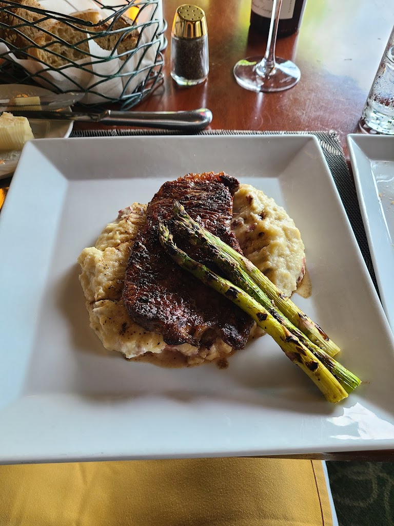 Although our experiences here in the past are typically just average, we did have an elevated experience last night with our server Jack, whose sense of humor and wine knowledge really made for a terrific dining experience. Chef's preparation of their Snake River Farms Wagyu Ribeye was delicious and Jack's suggested pairing of their red blend Unshackled was spot on. 👌
