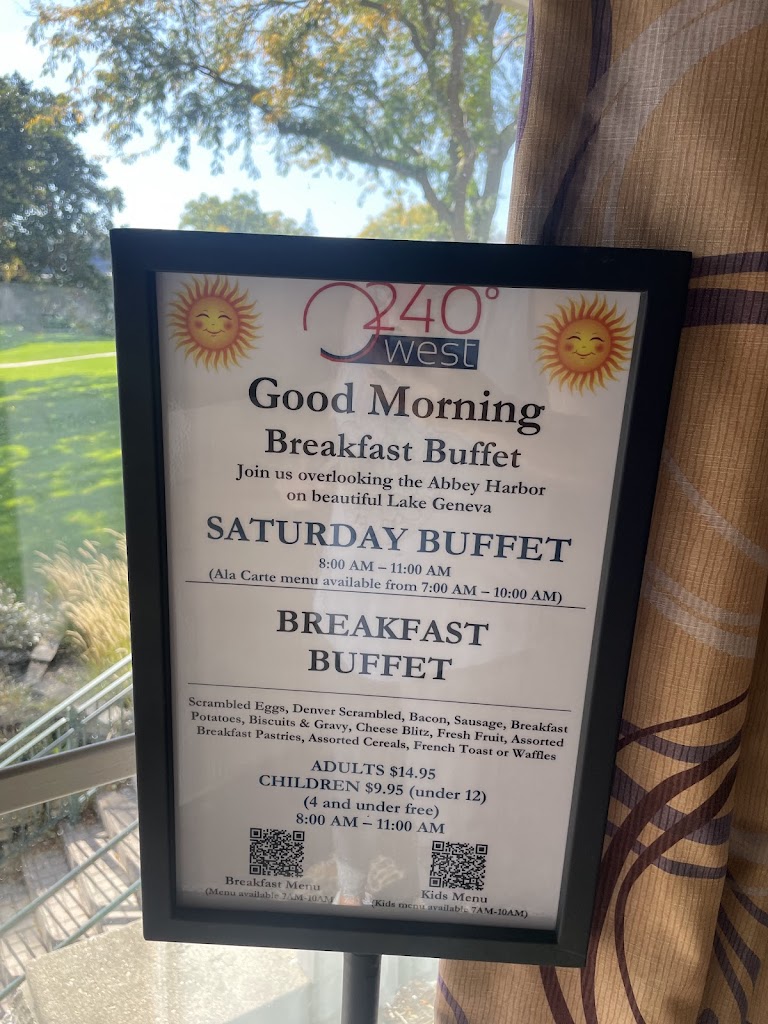 UPDATE. THANKSGIVING DAY 2023.. 240 West Restaurant served the Best Buffet. They offered Turkey, Roast Beef, Bacon, Belgium Waffles, Desserts, veggies, gravy, etc. We were blown away!