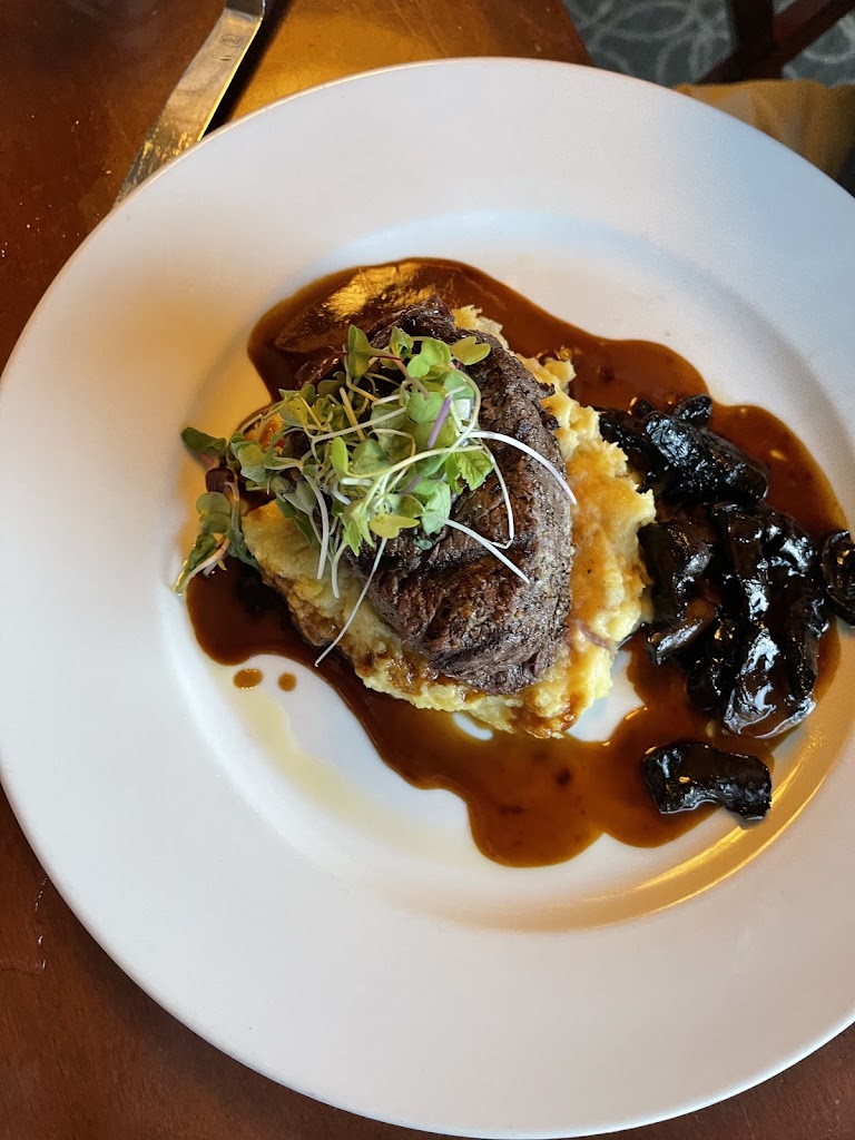Absolutely outstanding. BEST fine dining in the area. The service was spectacular. Our server, Ed, was very good; he was friendly and fun, who knew the menu very well. Our food was off the charts delicious. Everything was cooked perfectly! The filet, the salmon, the short ribs, our appetizer… it was all so good! I’ve lived in the area for 5 years and finally went. Now I know what all the fuss is about. We WILL be going back, 100%.