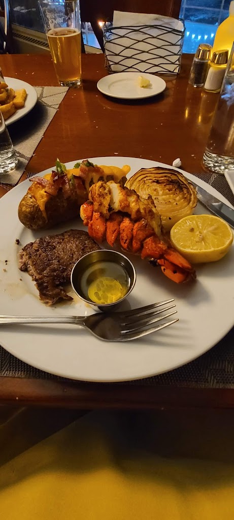 Atmosphere is nice if sit close to the windows, overlooking the lake. Bread was warm and probably the best thing next to the onion soup which was a good size portion for $12. I ordered a 8 oz. fillet and asked to have it cooked medium well, and came out, medium rare. I had to send it back. When the server brought it back, the potatoes that on the side were cold. My husband ordered a prime rib and it was ok, but wasn’t too impressed by no means. Very bland , no seasonings added. The server drops off a steak knife and must’ve thought that my filet would be so tender, that the butter knife would work. NOTTT! I had to ask for a steak knife too. You would think any steak served, is served with a steak knife! Probably one of the worst filets I’ve ever had. Not tender, no flavor. Definitely not worth the money!