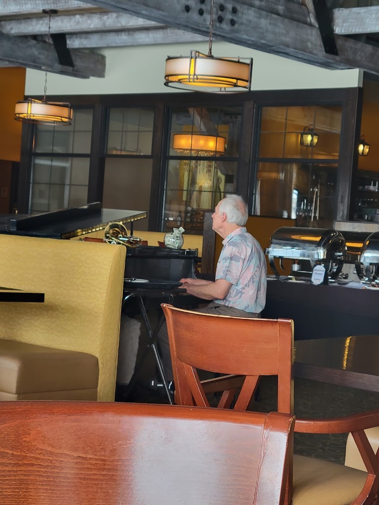 James is the best! We enjoyed not only the breakfast buffet, but a delicious steak dinner as well! Both experiences, James kept the drink refills flowing and recommended selections my friend & I enjoyed. Stop by and ask for James, spelled the traditional way! ☺️