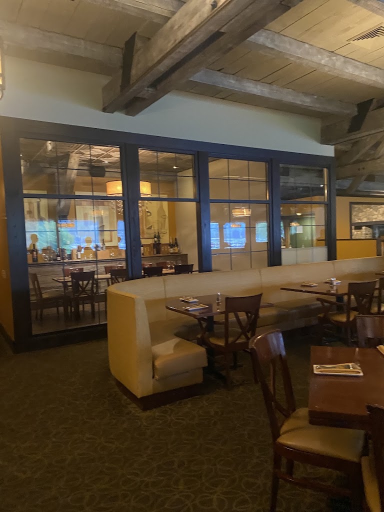 Food was terrible, my filet was nothing more than salt and pepper. Cooked well done sake for mid rare. My wife salmon was ok. Waiter was nice. What was strange was how they seated everyone right next to each other. It’s a huge restaurant and there were maybe 5 tables with people. They just sat everyone right next to each other vs spreading them out for social distancing which they were more than capable of doing. Why they did t I don’t know, don’t really care but I did notice it made another couple uncomfortable! Just dumb on there part have a huge restaurant use it.