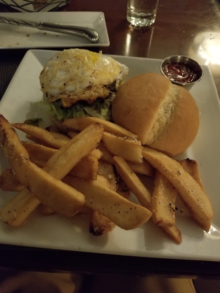 Eddie, who greeted us and took us to our table was fantastic. However, the waitress took a long time to not only get our drinks, but also take our order and for us to receive our food. We sat down at 5:55 pm and we didn’t get our food till about 6:40pm. I do recall stating to my wife “it shouldn’t take over a half hour to cook two burgers and fries.” With that said, the fries were hot and really good. The burger was not good. The bun was the worst part. It was “floury”. Tasted doughy and dry. It really took away from the burger rather than compliment it. I ended up eating it like an open face sandwich by taking off the top part of the bun. Also, to make it more flavorful we added mayonnaise and ketchup. The dish is really not worth the value. As a recommendation for if anyone reads it would be change out the bun. Maybe like a Brioche bun. Something not so thick and dense but maybe a bun that has a slight sweetness to it. I thought I took a picture of the hamburger but I do not see one. I likely missed it since it took so long to get it and I was hungry. The restaurant was not that busy at the time either so it wasn’t like they were slammed.