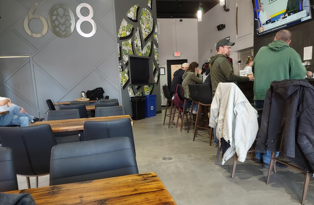 Satellite taproom for 608 Brewing Company featuring beer, cocktails and food.