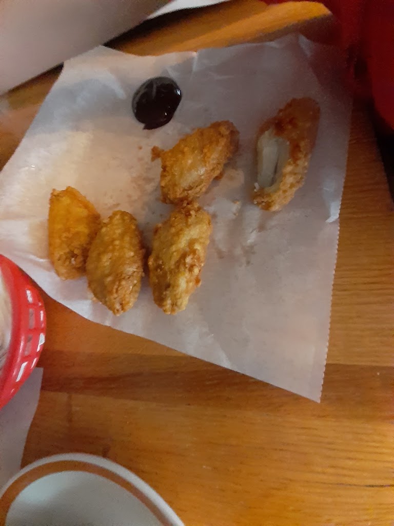 Looking for something different decided to order some carryout got a burger the shrimp Alfredo corn nuggets jalapeΓ±o poppers and chicken strips for kiddos the food was absolutely delicious and nice friendly service definetly goin back