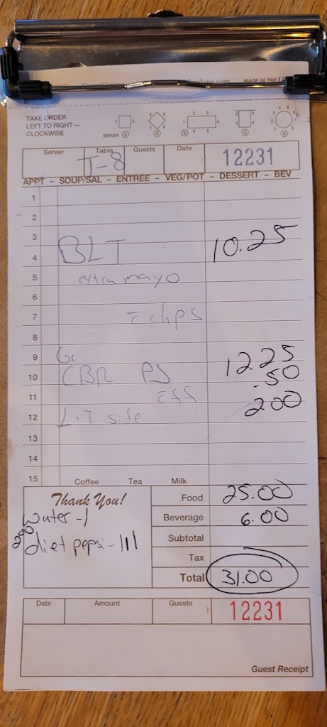 First time my wife and I have ever eaten here. She had a chicken sandwich she described as βhot and the juiciestβ sheβs ever had. I had a Western Burger that was all flavor. Fries were crispy and fresh. Our waitress was very sweet, and the cook came out and chatted with us as well. Will definitely return.