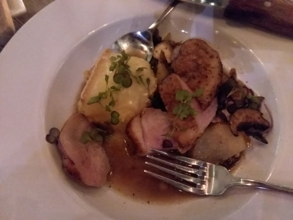 Chic place, great menu and service. I had the pork belly and Polenta, and brussels. Loved them