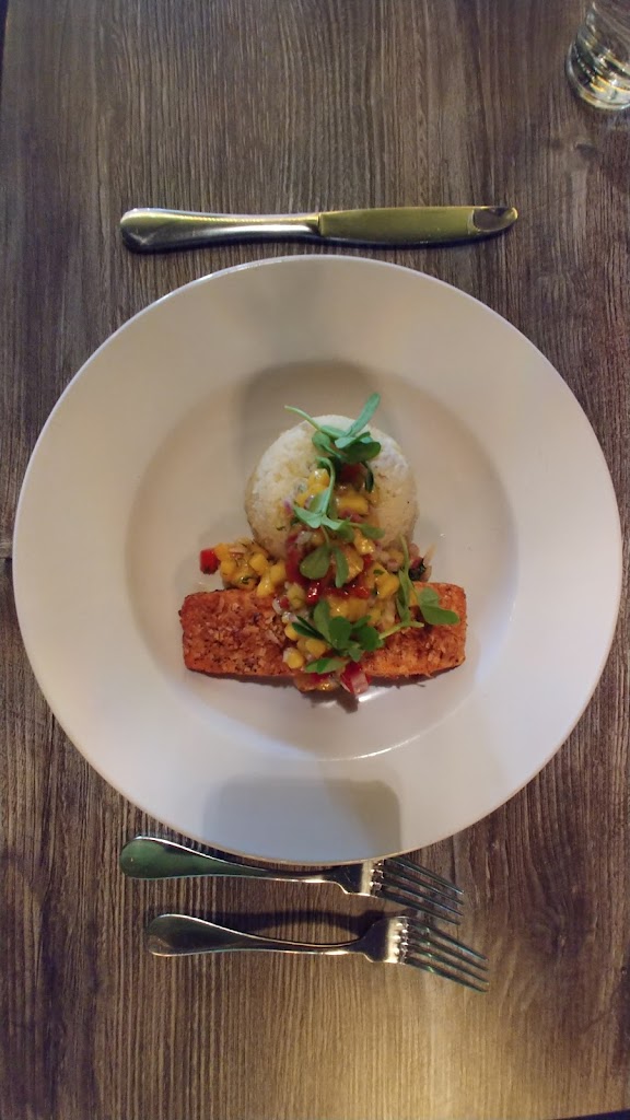 I had the salmon and a whiskey sour. The salmon was easily on par with something I would get at a high-end seafood restaurant in Florida. The whiskey sour is one of my new favorite drinks.