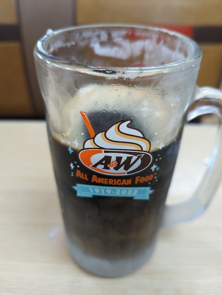 Small A&W but I love their food and drinks. Thanks for the 3.00 root beer floats! They have a senior discount 😉