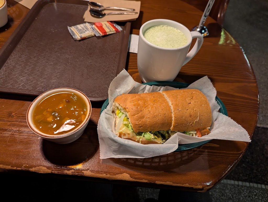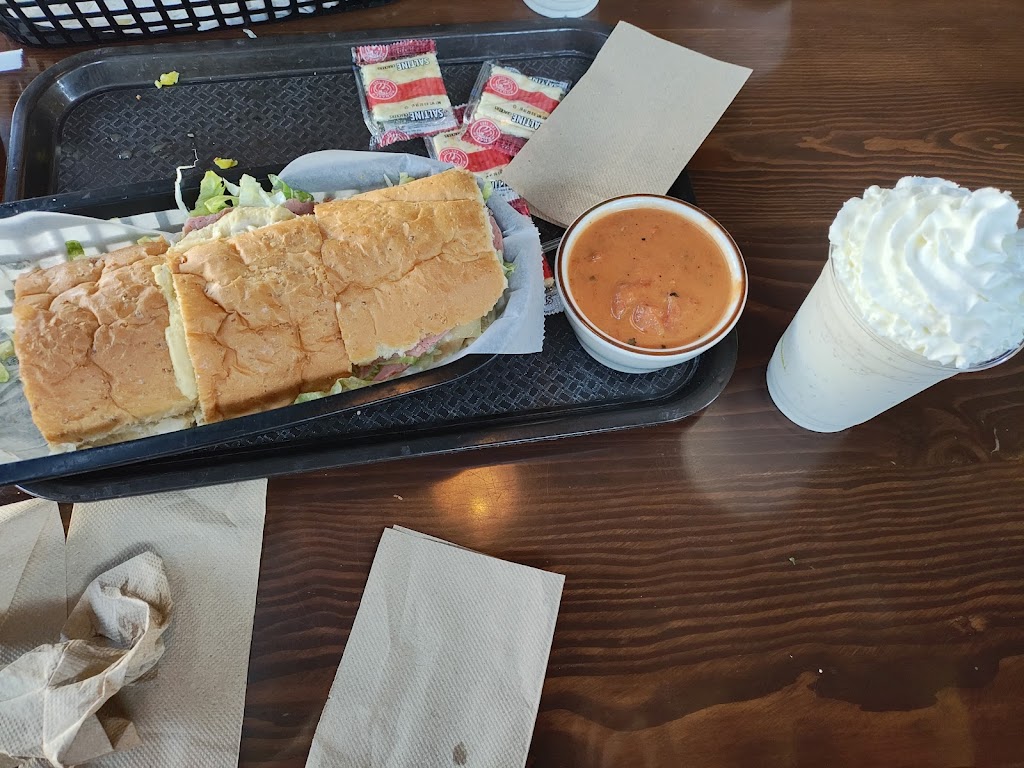 I usually don’t make reviews like this, but I thought it was necessary. I don’t like to talk bad about restaurants, but the experience was not the greatest. I ordered the tuna pita and a cup of vegetable soup. The vegetable soup had a very bad aftertaste. I couldn’t even eat it. It also, barely had any vegetables in it. I would never suggest ordering that. My boyfriend got the chili and it was amazing! I think there’s other good things on the menu, but what I ordered was not it. The sandwich was good, but the tuna was mid it was still fishy. Needed more mayo. The real reason I made this review, was because I ordered an Italian soda because I can’t have caffeine. Unfortunately, there were hairs all over the outside of my cup. Hair, from somebody working in the kitchen. Not just one, multiple of them. I do not have short, black hair, I have long orange hair. My boyfriend’s coffee was delicious though. It was about $45 for two sandwiches, 2 cups of soup, poverty nachos, and two drinks. I thought the nachos had a funny after taste as well. So I couldn’t have more than a couple bites. They’re just microwave nachos. Just disappointed, there was hairs all over my cup.