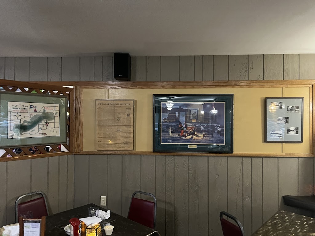 Best place to eat in Green Lake! Food, Service, & Pricing excellent! I gave atmosphere 4 stars simply because I thought Andy, Helen, Barney, and Thelma Lou were going to join us for dinner. (From the Andy Griffith Show). That would have been fine too though. A must stop if you are going to Green Lake