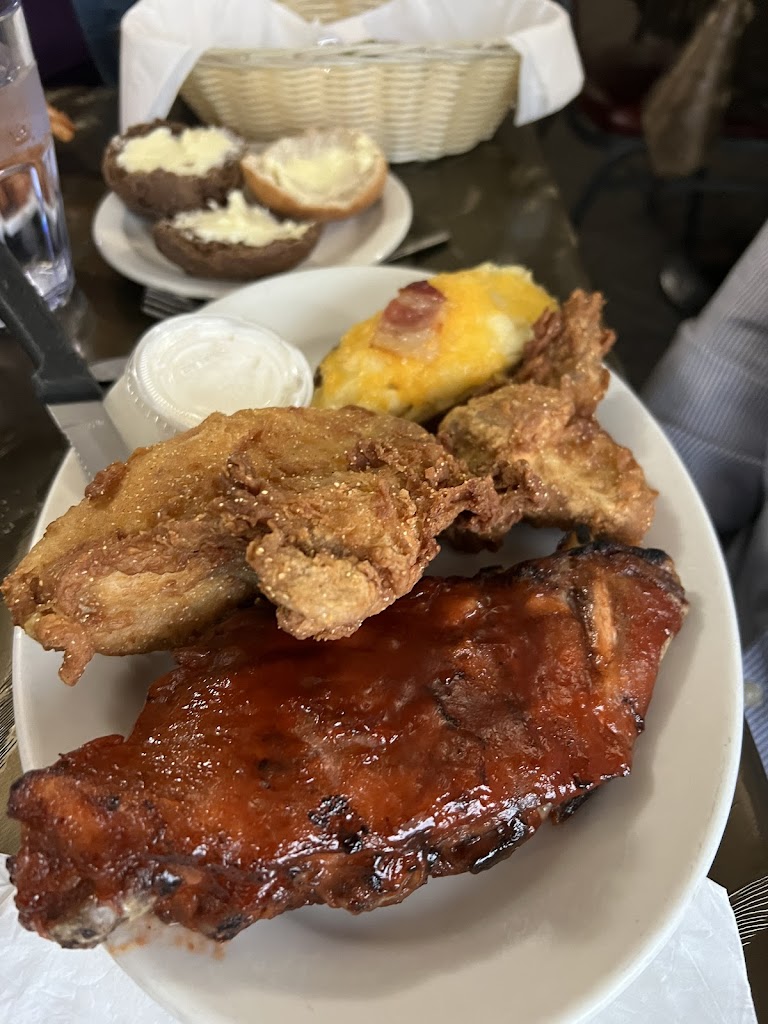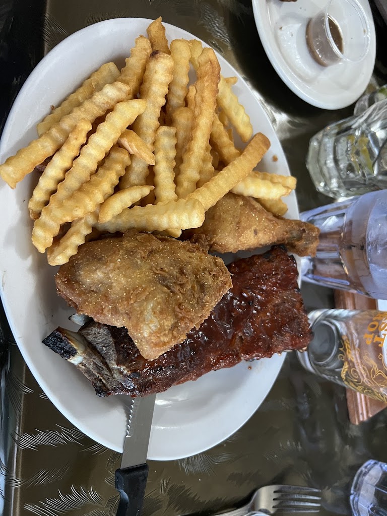 First time here and very disappointing. Had to wait almost a hour for our food due to a Back Up in the kitchen. When our food finally arrived the orders were all mixed up and it wasn’t the food we ordered. Next thing they do is start bringing out our order in pieces from the kitchen to try to fix their mix up. Keep in mind the restaurant was only half full: I ordered the BBQ Ribs and Chicken Combo and I am not a fussy eater at all. BUT I don’t appreciate a piece of Chicken zapped in the microwave and a tiny bit of sauce. We asked to speak to the Manager or Owner and no one was available so we got the other waitress who really couldn’t cared less how and when we got our food!! Thank you so much for ruining my Husbands Birthday. First and Last time here!!! NO offer of a discount or of trying to make things right. We paid our bill left a tip and will never return again!!