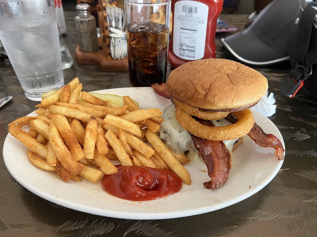 Stopped here while out riding E Bikes with a friend... Lunch was delicious!! Ordered The Seb - hamburger with Swiss cheese and onion rings!! Great experience 😊