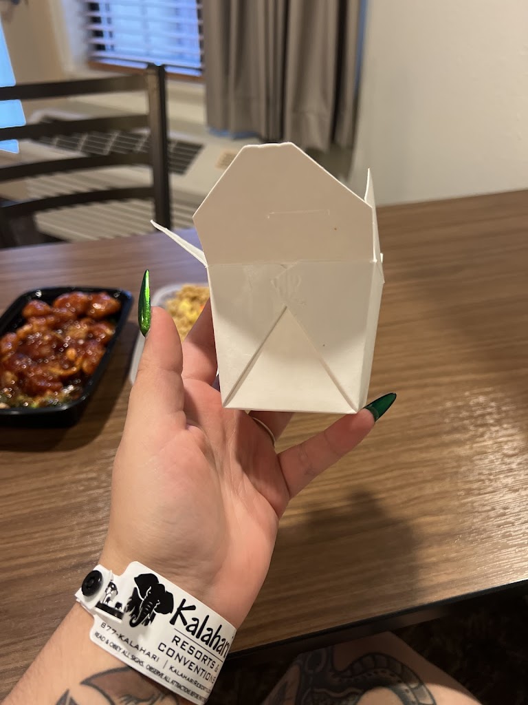 The food is excellent! Honey shrimp is our favorite. Every year we make sure to get takeout when we are at the Kalahari. So good!