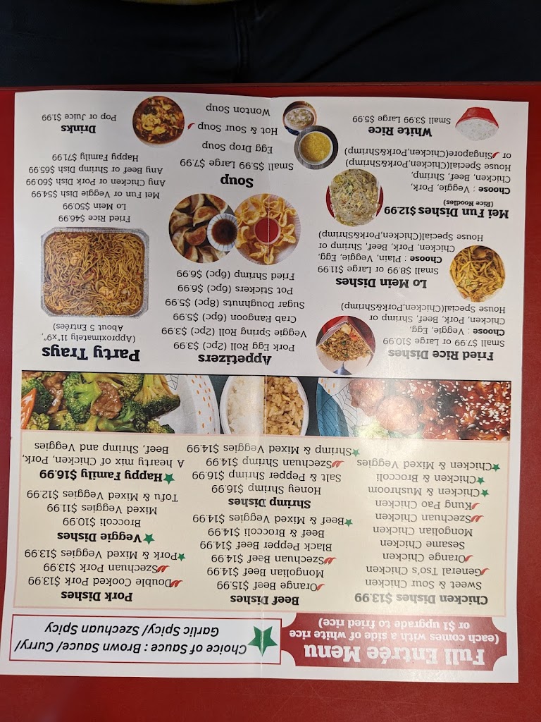 The flavors are there but too greasy. They are fast. Don't get shrimp and pepper or schezaun pork. Shrimp and pepper is not supposed to be battered. Pork tasted dry and old. Eggrolls are toddler size. Best thing was the veg lomen and chicken broccoli.