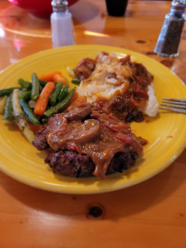 Wild rice meatloaf is always excellent🤤. Waitress was very friendly. Went for lunch late, very peaceful.