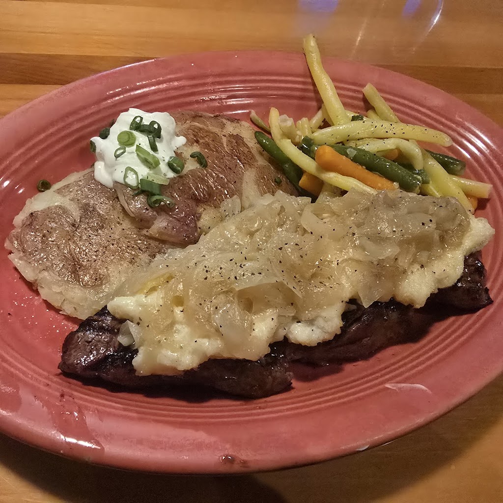 Ordered a 6oz medium rare steak. The small six ounce steak is what I expected but could only eat maybe a 3rd of it because of all the tough chewy cart ledge and also came back rare. Wasn't impressed. The seizure salad was good.