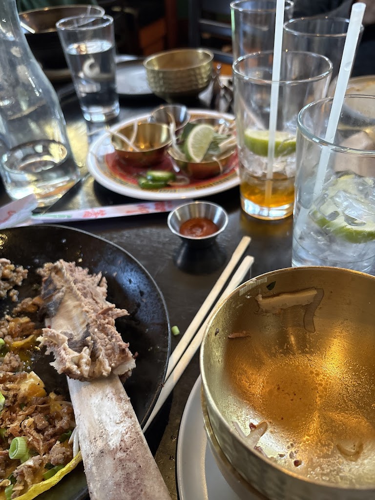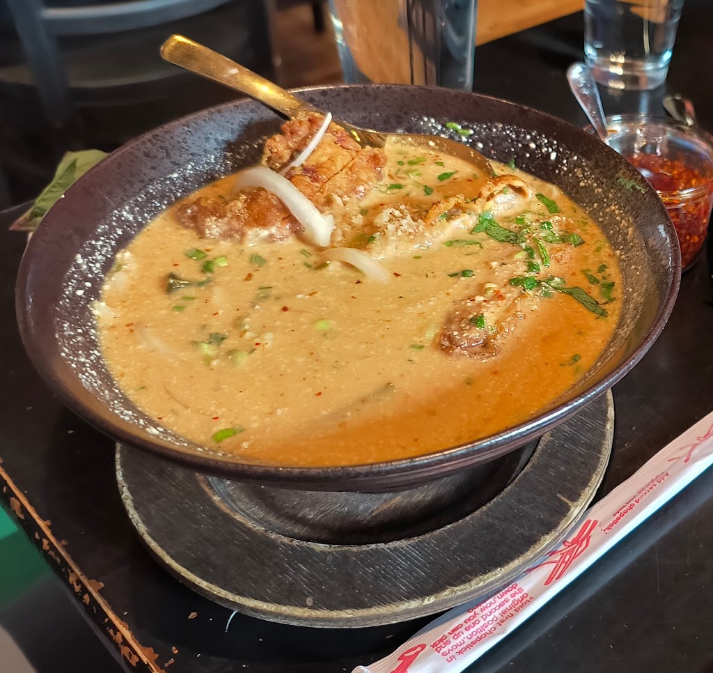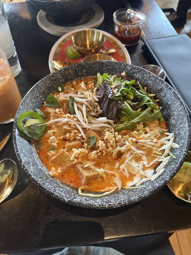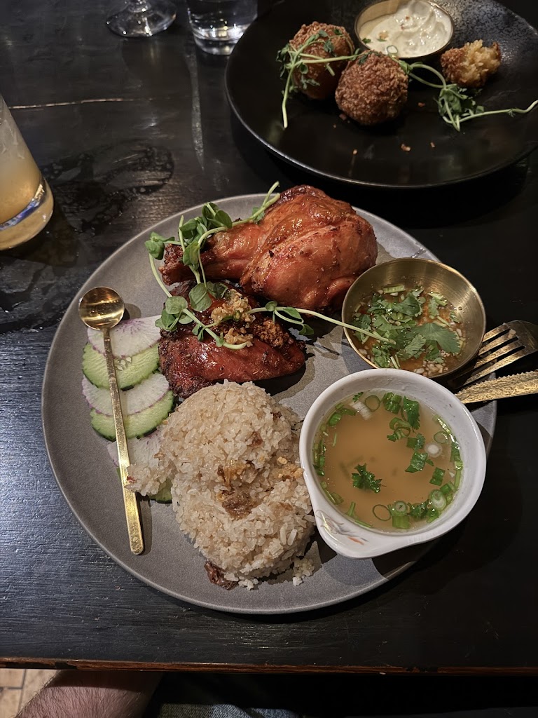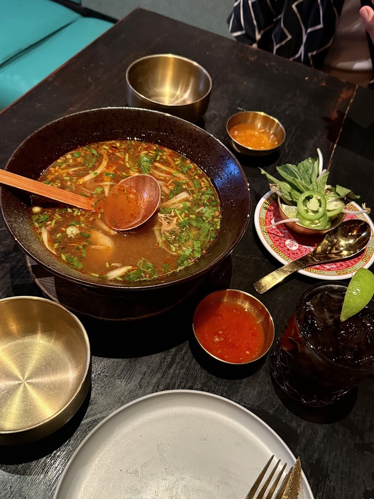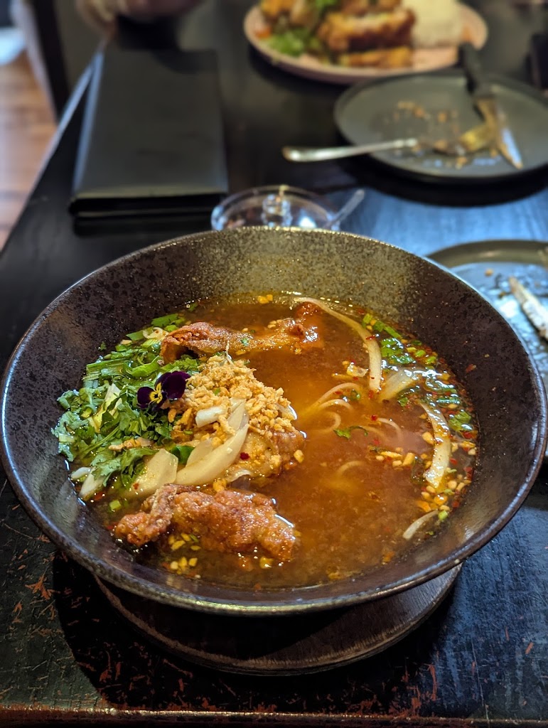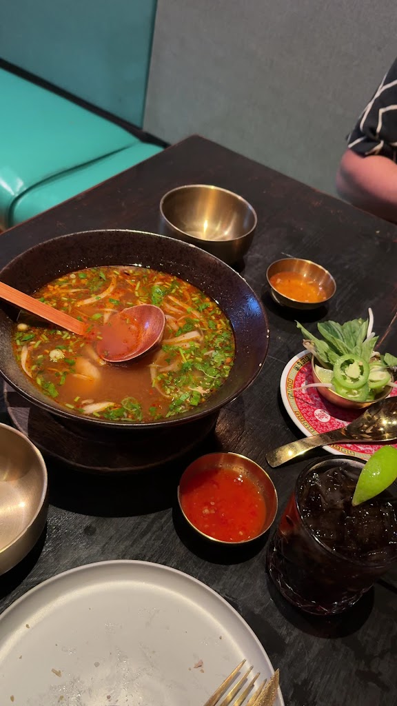 The food doesn’t taste that good. The presentation is beautiful, but the food lacks authentic Southeast Asian flavor. The soup was too sweet and too sour, and lacked any complex flavor. What’s their deal with putting fried chicken on everything? Whole restaurant feels a bit gentrified. Restaurant was so packed, so I really expected more. 19$ for a basic bowl of sugary soup is atrocious. We also weren’t given utensils or napkins and had to ask for them. No water refills.