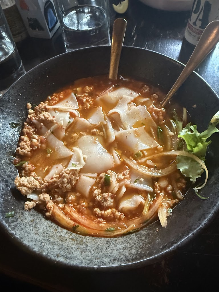 The Tom Kha special sold only on the weekend was worth showing up on a Saturday for! It was an incredibly bright yet rich broth with galangal, lemongrass, and lime, balanced with coconut milk, and served with their famous fries chicken over a beef of rice noodles. As delicious as the fried chicken thigh was, I recommend adding shrimp to this dish as that would pair better with the dish, imo.