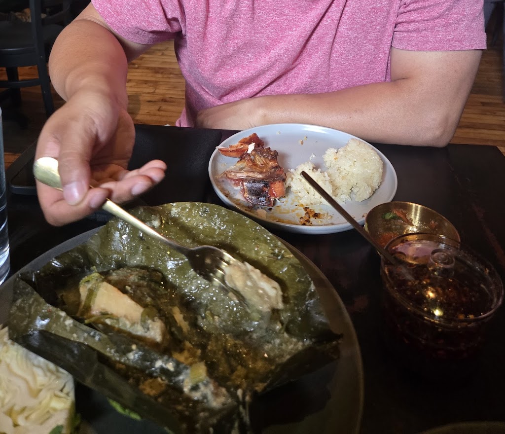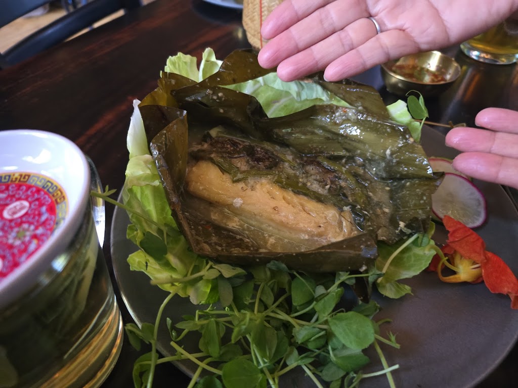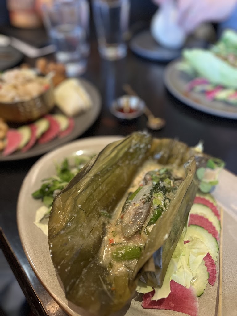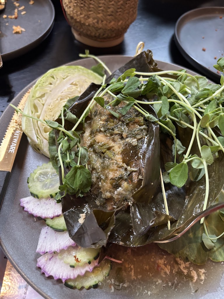 Ordered the green coconut curry with chicken, wife ordered cod wrapped in banana leaf. She too said her meal was delicious!