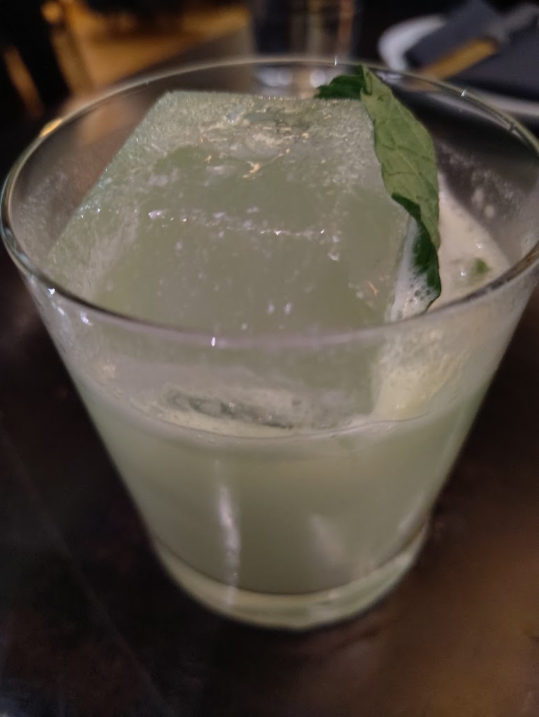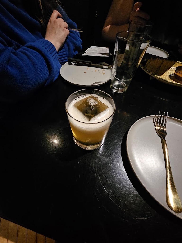 The cocktails, my bf and I both had a smoky mezcal cucumber melon with a yoghurty swirl, fancy ice cube, what wuttt. So. Good.