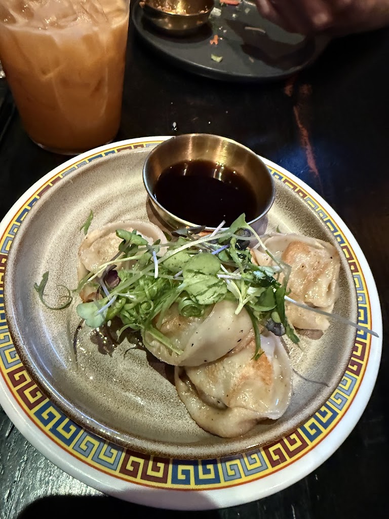 Arriveed 15 minutes early today before they opened and there was a small line at the door already. It was our first time here. Within 15 minutes of opening, the restaurant was full already. Gave me good hopes that the food was good. We order the pork dumplings and Khao Tod for appetizers. Kids love the dumplings that we had to order more.