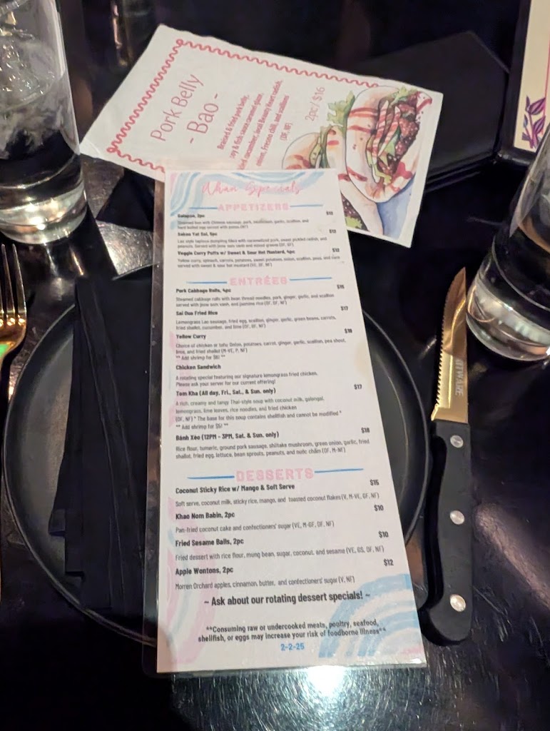 I loved their food - tasted great and the presentation was special. I loved their red and green curry! I’m Southeast Asian and the atmosphere was cozy and felt “right”. Our wait person was friendly and helpful! Everyone was friendly! The sticky rice with mango and ice cream was brilliant!