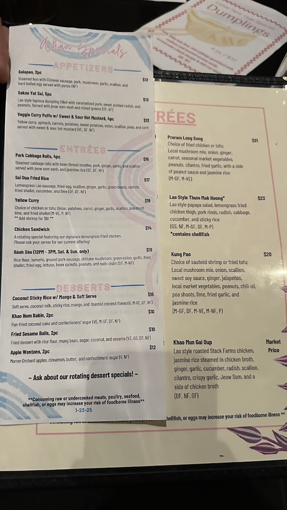 I had the Lao platter and salted Limeade. It was absolutely delicious!! The staff were kind and more than helpful! The atmosphere was relaxing!! I would definitely recommend this place to anyone and everyone! Thank you so much to the wonderful and hardworking people of Ahan for a magnificent experience!!! ❤️❤️❤️