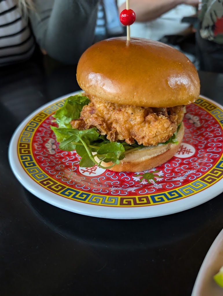 Had their fried chicken for the first time, it was otherworldly CHEVRE on a chicken sandwich, cucumber? Too insane to even describe.