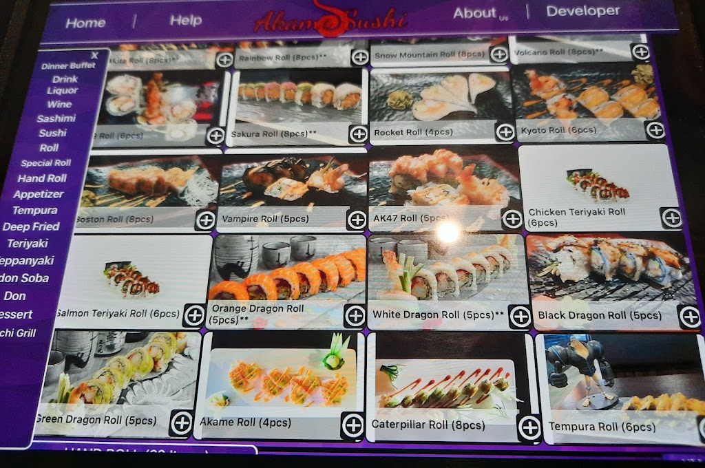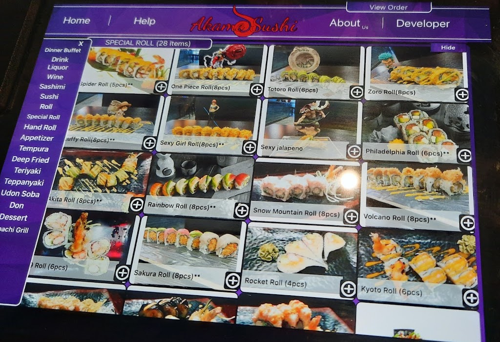 They have a unique ordering system with a tablet. You can see pictures of the rolls, and get descriptions of what is in each of them. They also have appetizers like crab rangoon, gyoza, and spring rolls, as well as fried rice and hibachi options. They are fast with the orders, and it was all delicious!