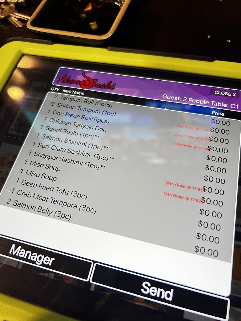 For context, you order from a tablet (which is so easy and fast to do), so your server won’t come up to your table to order your food. I like this very much as they don’t bother you. They’ll just come get your empty plates and ask if everything is going well. Plus, all my servers that I’ve had were friendly.