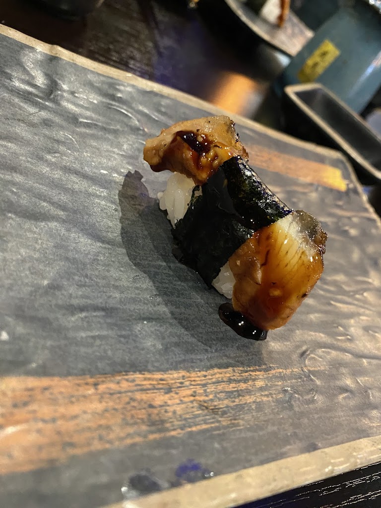 My first time here at Akame Sushi. My fave is the salmon belly. The fat was just about perfect for this piece! Ordered several times.