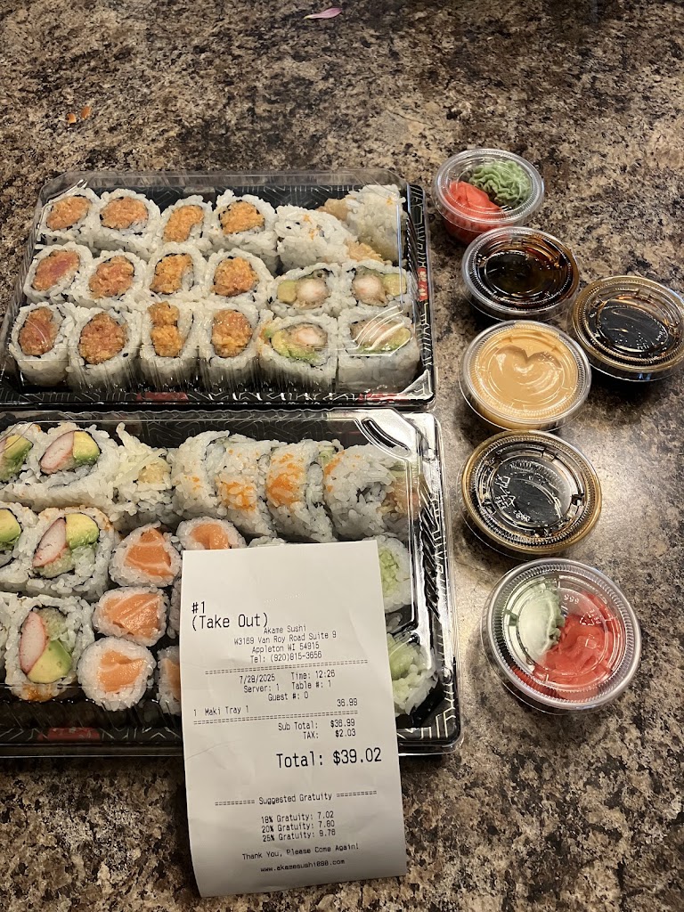 Yummy food, with neat atmosphere and loved the Ipad for ordering. Loved the Boston roll. Ill be back. Thanks for coming to Appleton. Its nice to have a good sushi restaurant 😋