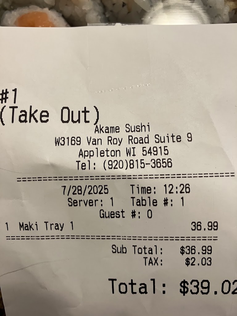 Ordered a 42 Piece tray, pieces were small and just ok. $45 with tax and tip, worth it? Not really, wouldn’t order again. I would have done better with Sushi Monday at Pick and Save.