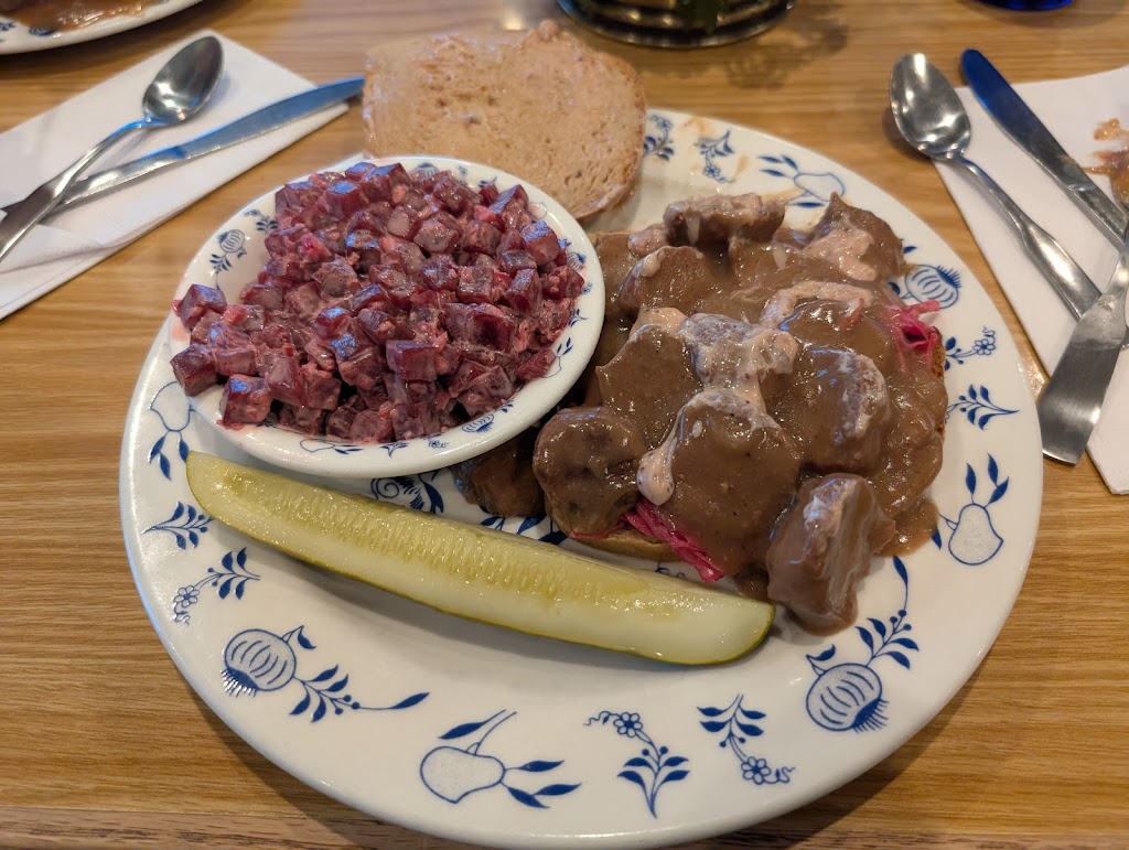 Great place! It always has been. Expect a long wait during busy times but there is plenty to do while you wait. (Gift shops, outdoor beer garden… I had the Swedish meatball special. It was small portions and $20 but they were great.