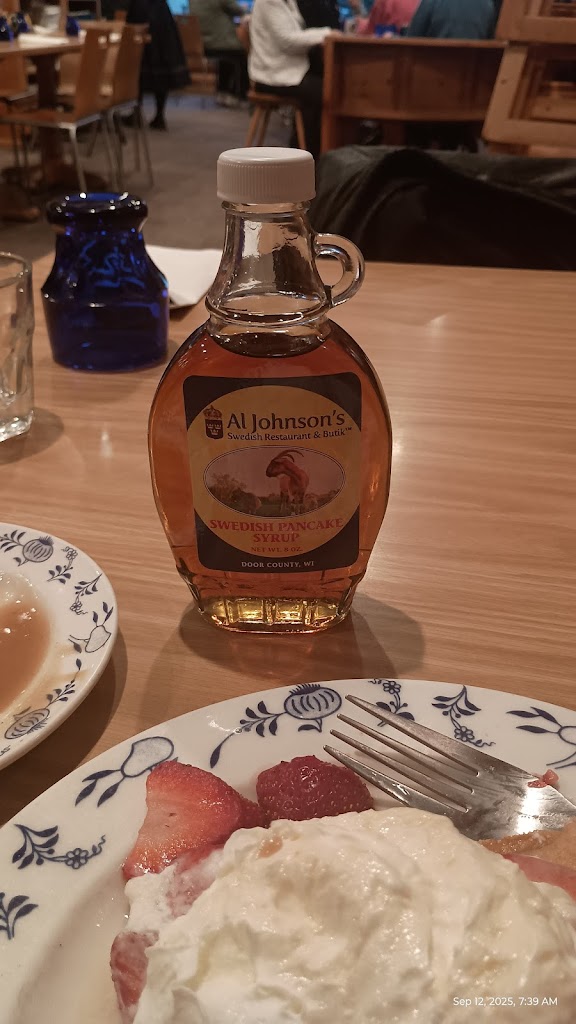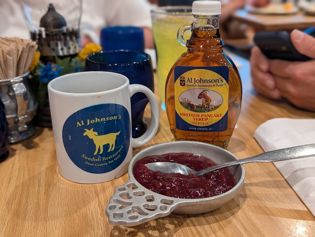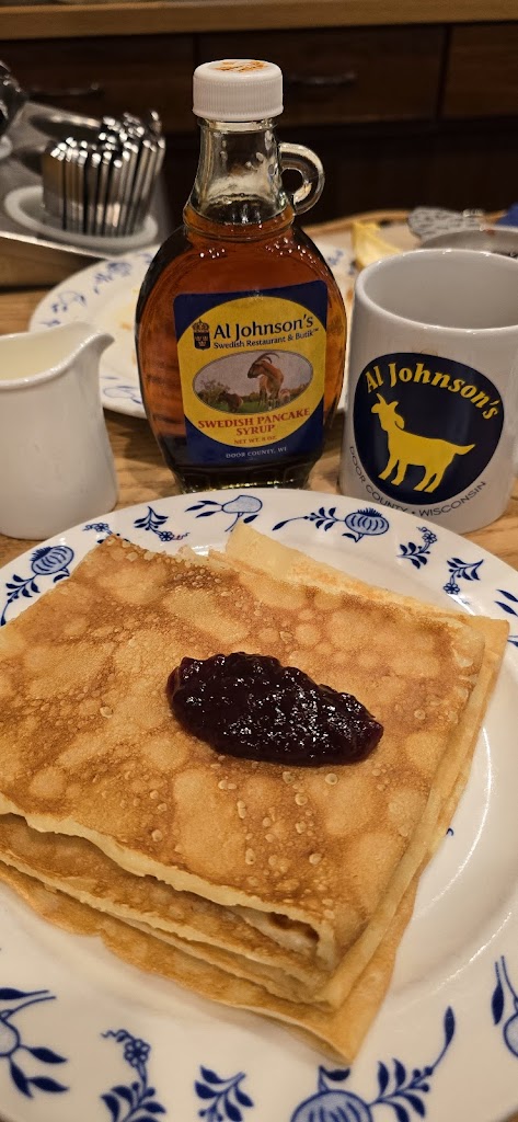When in Door County, Al Johnson's is a must for Swedish pancakes with lingonberries and meetballs. Food is delicious and service is impeccable. Expect a long wait during peak times. We waited 2 hours, but we got coffee at the shop down the street and browsed the two shops on either side of the restaurant. The goats on the roof thrill me even now as an adult.