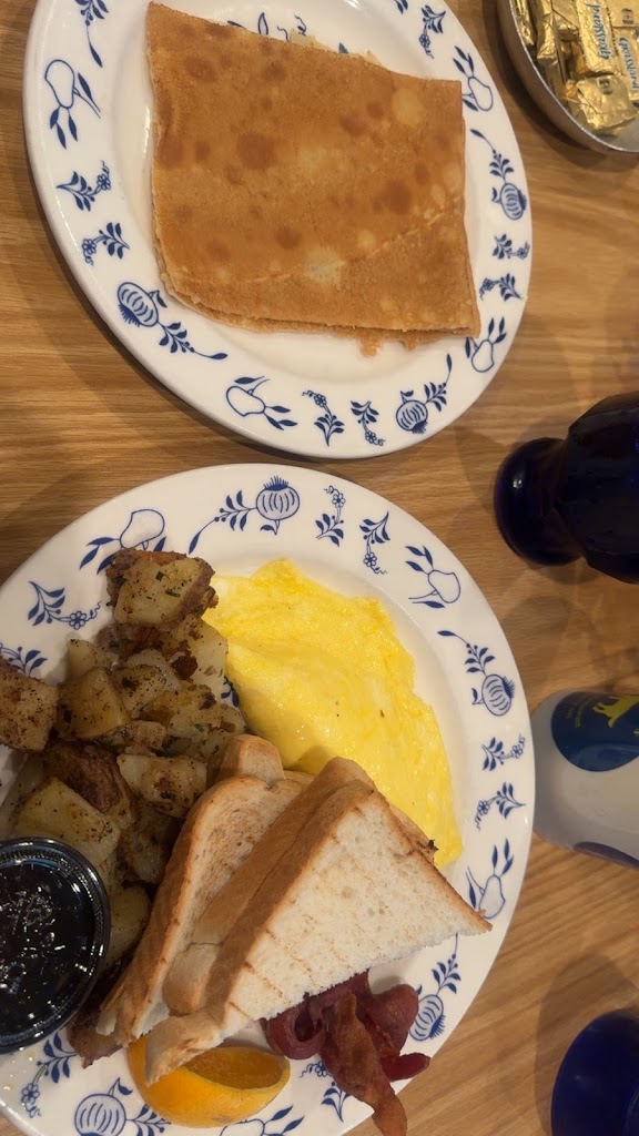 Busy restaurant, feeling a little rushed, did not get any coffee refill. The famous square pancake was OK.