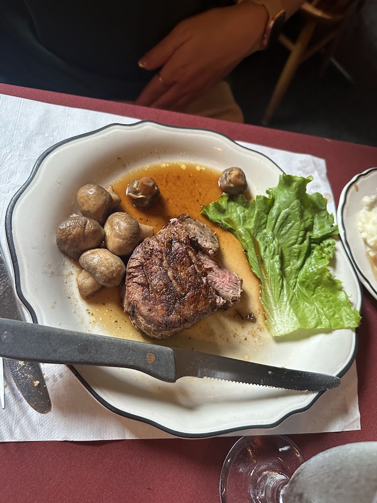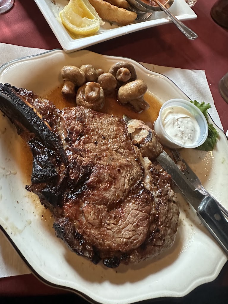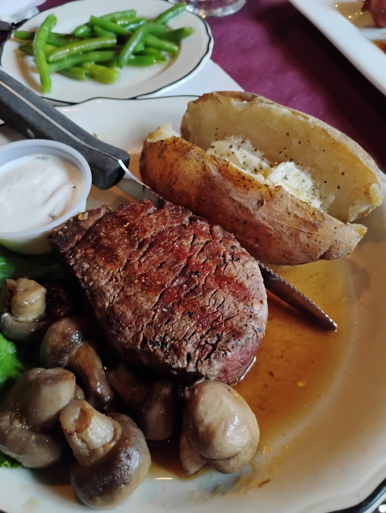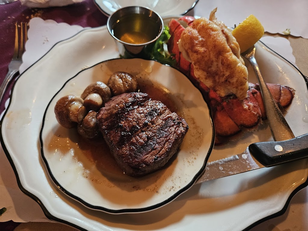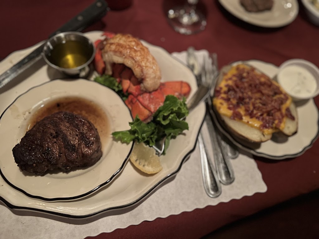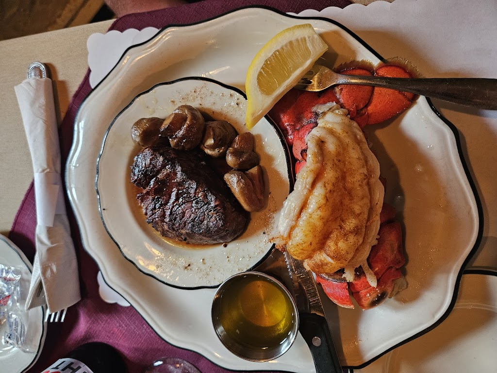 We went there on a recommendation.I was told that the steak was excellent .The atmosphere was as expected. Had to make reservations weeks ahead. My wife had the fillet and lobster and the other meal was a ribeye. I ordered the ribeye medium and it came very rare and very fatty. I refuse to send food back anywhere. It’s a trust thing. Took the steak home. Surf and turf was good. The dinner was around $100 plus tax. Not bad. Servers were very attentive. I would go back, but not for steak.