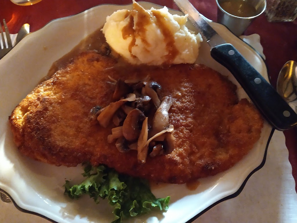 Jaegerscnitzel was delicious. We had a great time and super friendly service.