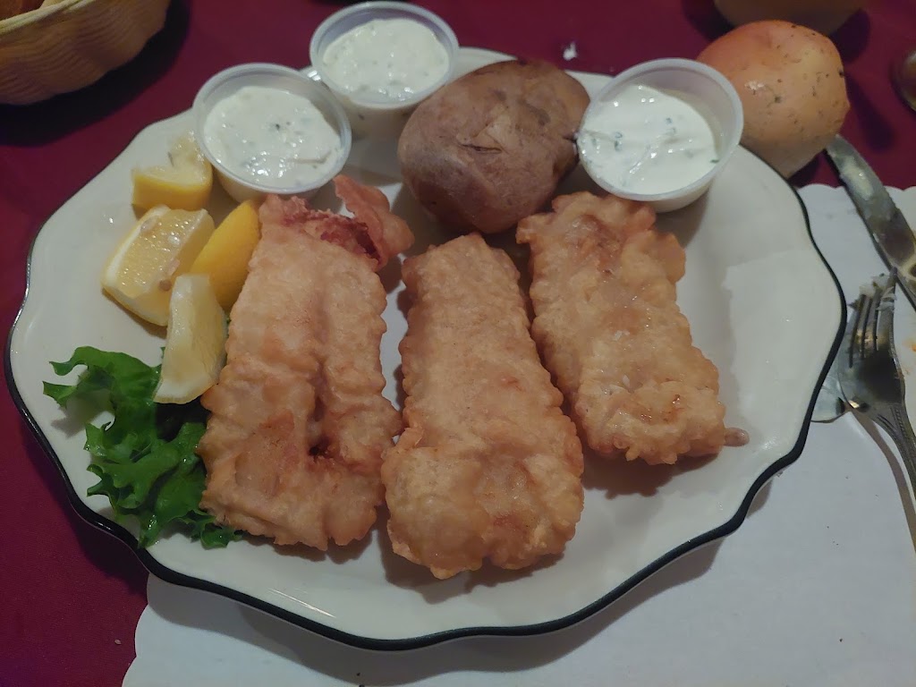 First time at Alpine. Found the atmosphere relaxing and the entertainment from the bar was outstanding. There are 3 large windows looking out into a wooded area. There were at least 10 well fed squirrels and several large rabbits. After awhile, 6 large tom turkeys came scurrying down the hill, scattering the squirrels and rabbits. Shortly after, we were called to our table and enjoyed a great meal. My lady had lightly breaded pan fried walleye which was very tasty and I had the beer battered cod. The meal was served with crackers and cheese spread followed with a choice of clam chowder or salad. The fish and frys were hot when served. Definitely a place we will return to.
